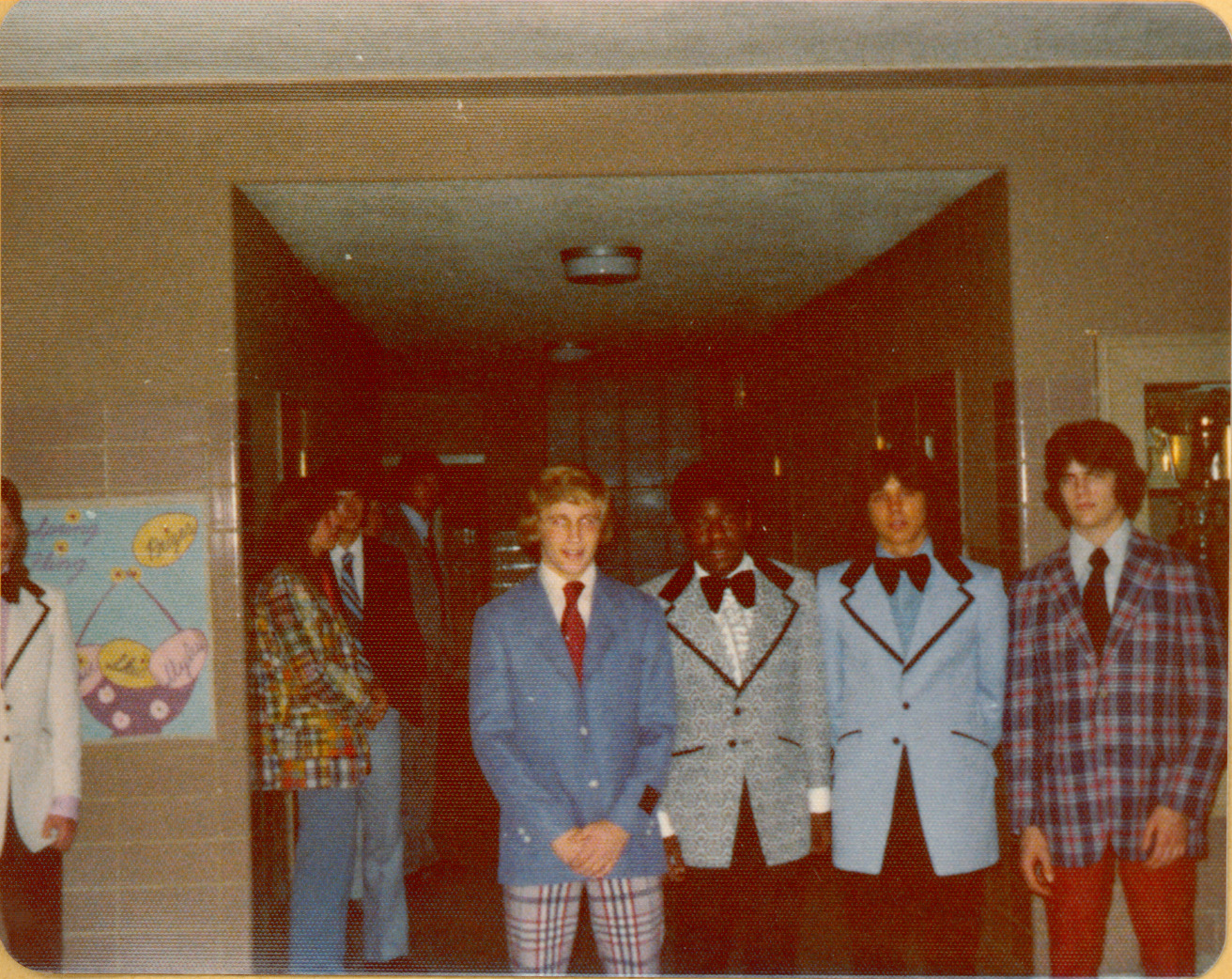 Worthington High School students are pictured modeling fashions that would be featured in the 1974 "Spring Fling" pre-prom style show. The event, sponsored by the Activity Club featured a fashion show, stage band, vocal groups, thespian skit, and door prizes. Models were Dean Blythe, Jeff Brown, Doug Burkhart, David Cavanaugh Jr., Aaron Combs, Mike Fluellen, Kevin Foley, Sylvia Harding, Sally Haywood, Jeff Knight, Linda Latimer, Lynne Livingston, Ross Long, Kay Morrison, Gayle Parkhill, Lisa Roby, Robin Rogers, Mary Scott, Tom Semans, Mark Stevens, John Strickland, Sheri Simcox, Barbara Warner, and Patt Whitehead.