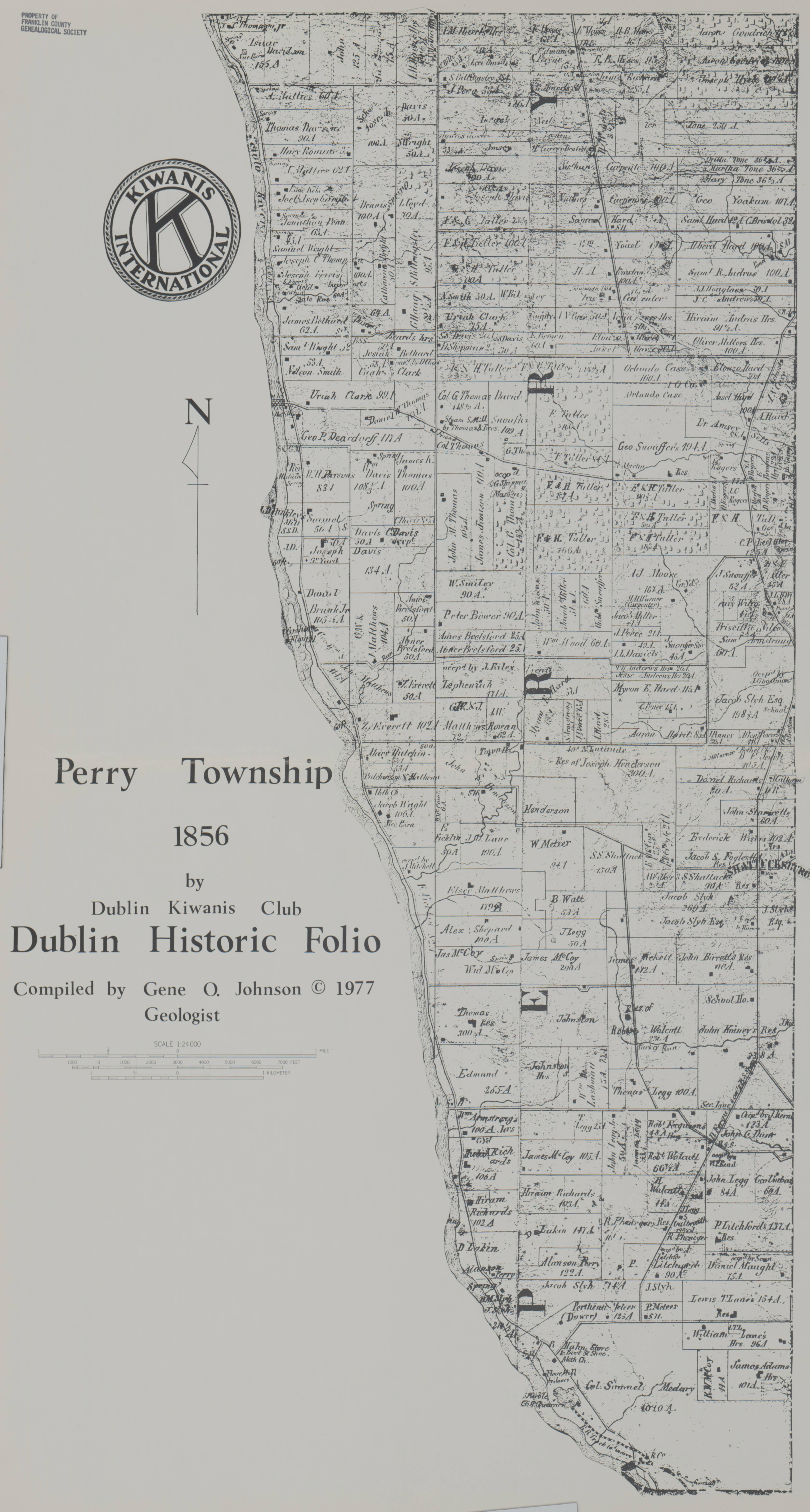 This plat map for Perry Township, Franklin County, Ohio, shows property ownership in 1856. It's taken from the "Dublin Historic Folio," which was donated to the Columbus Library by The Franklin County Genealogical and Historical Society.