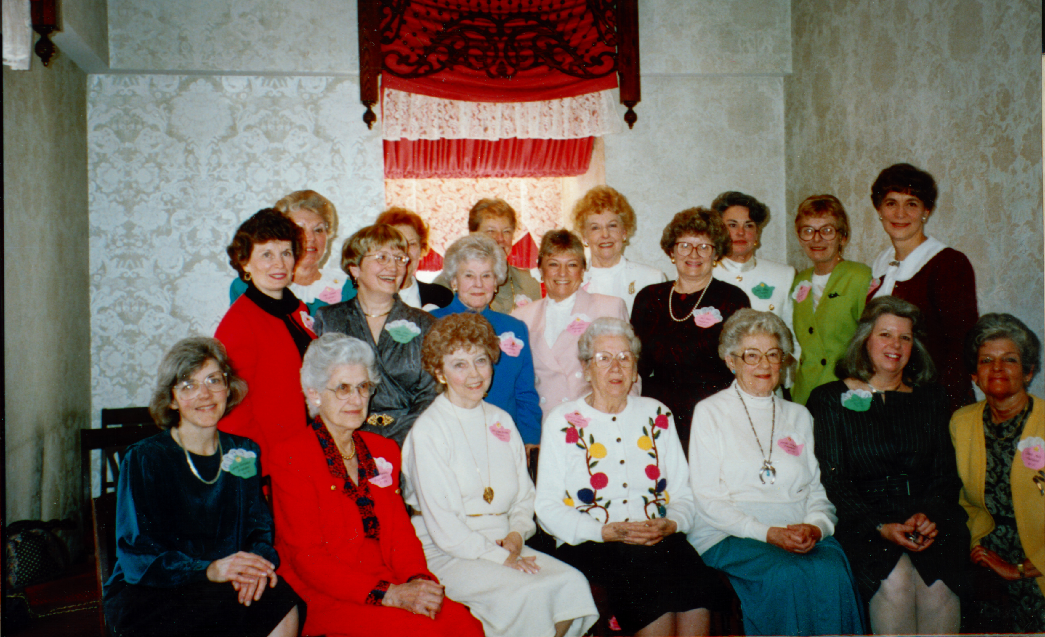Past presidents of the Activity Club are pictured in this group photograph, taken at the club's 1992 Alumni Reunion English Tea held at the Worthington Inn. Activity Club presidents 1937-1992 were; Marian Mackay (1937-40), Mrs. Edwin Johnson (1940-43), Leota Hoag (1943-46), Deborah Mckibben (1946-48), Helen Halley (1948-49), Louise Haager (1949-50), Virgina Scatterday (1950-51), Ardis Hamilton (1951-52), Emily Lowman (1952-54), Harriet Keating (1954-56), Elsie Cadisle (1956-58), Elizabeth Spangenberg (1958-60), Jane Griffith (1960-62), Katherine Hamilton (1962-64), Elizabeth Warner (1964-66), Jacqueline Robers (1966-68), Ann Hall (1968-70), Ruth Matson (1970-72), Mary Jane Semans (1972-74), Betty Latimer (1974-76), Simi Long (1976-77), Marilyn Pfleiger (1977-78), Dorothy Driskell (1978-79), Joan Harding (1979-80), Diane Hitt (1980-81), Nancy Lund (1981-82), Brenda Sutherland (1982-83), Clari Owens (1983-84), Elaine Smith (1984-85), Judy Dillon (1985-86), Jean Taylor (1986-87), Carole Miller (1987-88), Marty Schwarz (1988-89), Judy Chosy (1989-90), Laura Stremanos (1990-91), and Janey Davies (1991-92).