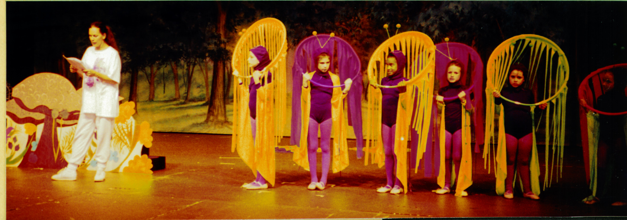Barbara Burrows, director of the Worthington Civic Ballet and Youtheatre is show here with young members of the ballet company at a dress rehearsal for the 1996 production of "Alice though the Looking Glass", based on Lewis Carroll's classic children's book Alice in Wonderland. Burrows choreographed the ballet, and designed the elaborate costumes which she made by hand.