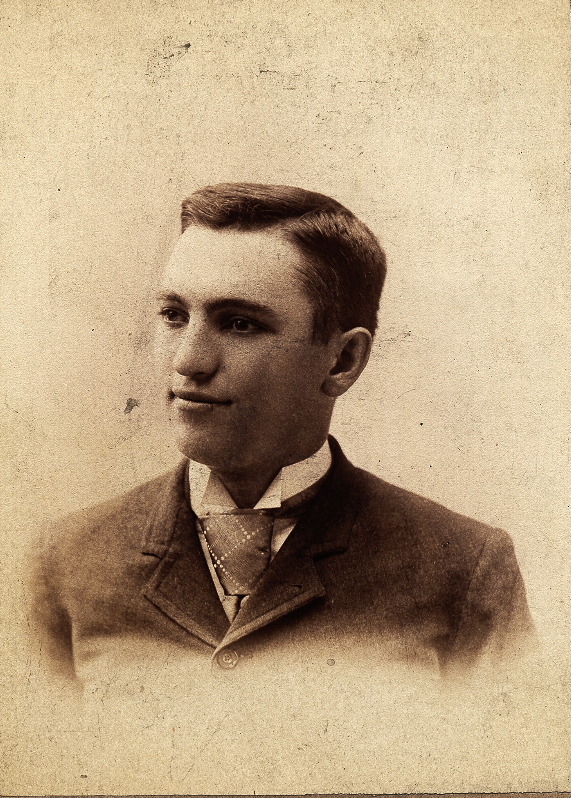 Alvin F. Potter (b. 1873, d. 1951) is pictured around the time of his graduation form Worthington High School. He was the youngest of six children born to Caleb and Lucy Potter. Alvin and his wife Minnie Potter (b. 1871, d. 1952) had one daughter Mable L. Potter Fickell. Alvin lived in the Worthington area most of his life and was engaged in farming and also worked for the Sharp and Doan Drug Company.