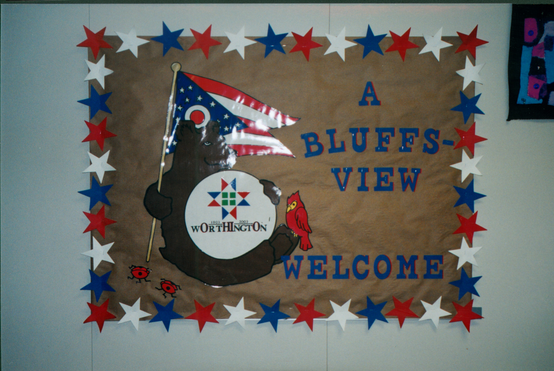 All grade levels at Bluffsview Elementary spent the 2002-2003 school year researching and participating in historic vocations and activities that enhanced their understanding of Worthington's heritage. Each grade learned about an early Ohio vocation or recreational activity and then created representative historic arts and crafts of Worthington. Students also learned songs, musical games, and dances popular in early Ohio. In the spring the school hosted a Bicentennial Arts Open House to spotlight Bluffsview's year-long project. Upon entering the school, visitors were welcomed with friendly faces and festive decorations. Art displays were located throughout the school. Musical performances and special projects focusing on famous Ohioans and Ohio interactive displays were also available for viewing.