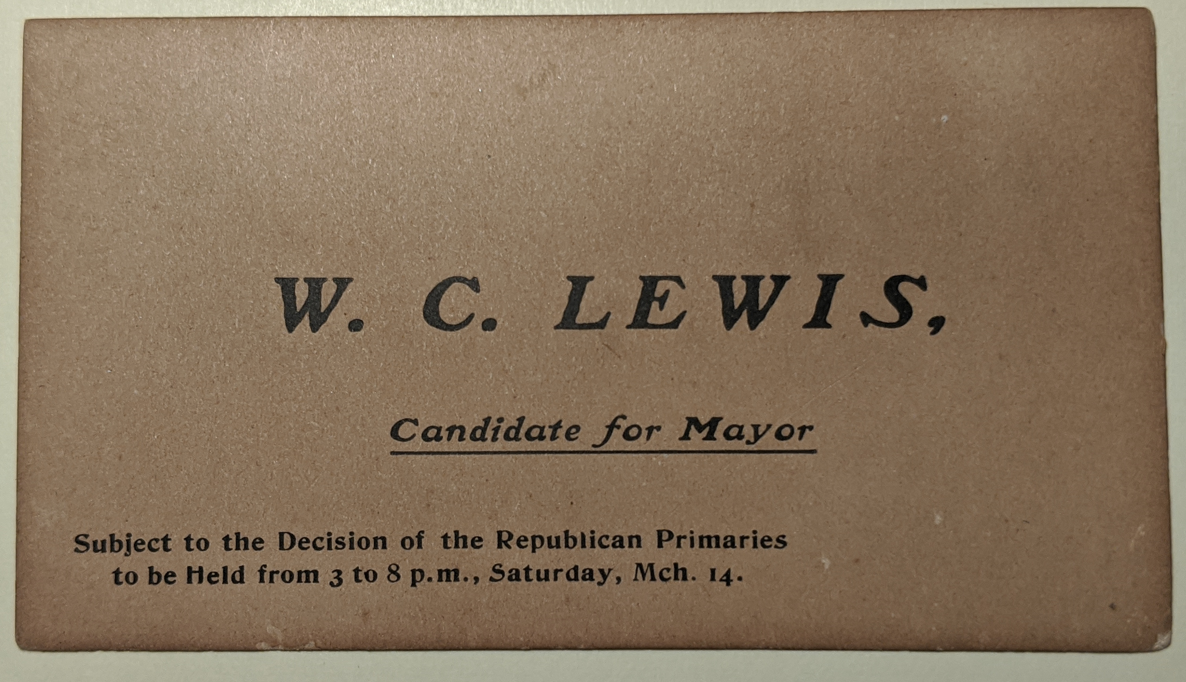 Candidate Card for W.C. Lewis for Mayor
