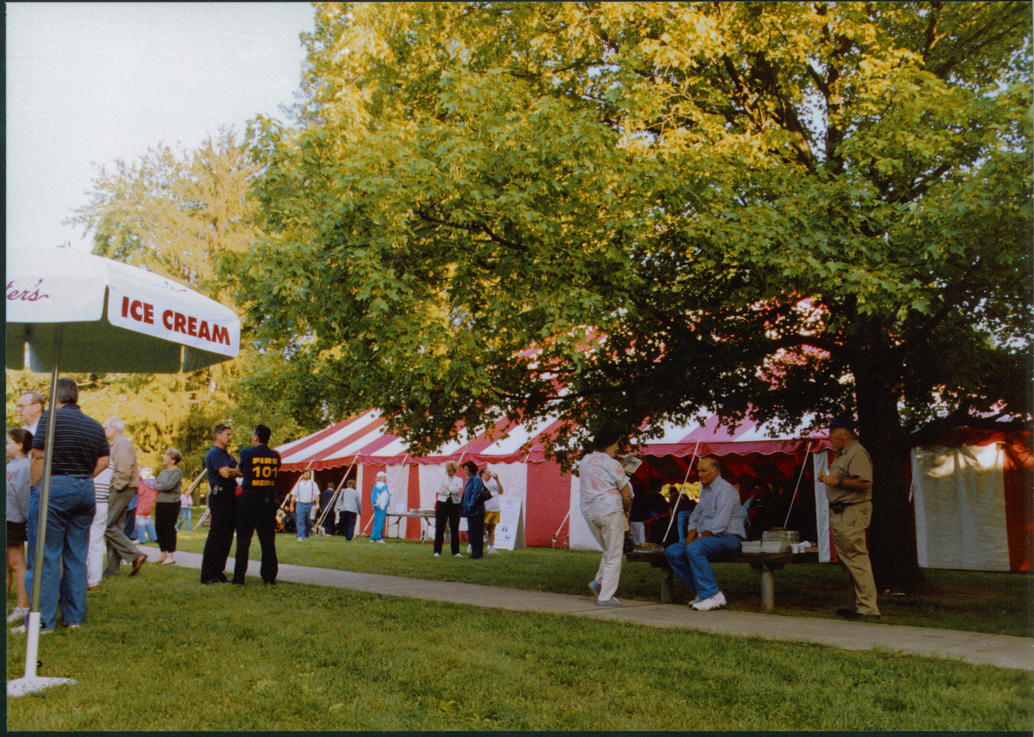 The front lawn of Thomas Worthington High School was transformed into a community gathering spot during the Ohio Chautauqua 2003, which took place June 18-22, 2003. The big top tent provided a venue for living history performances, as well as musical entertainment.