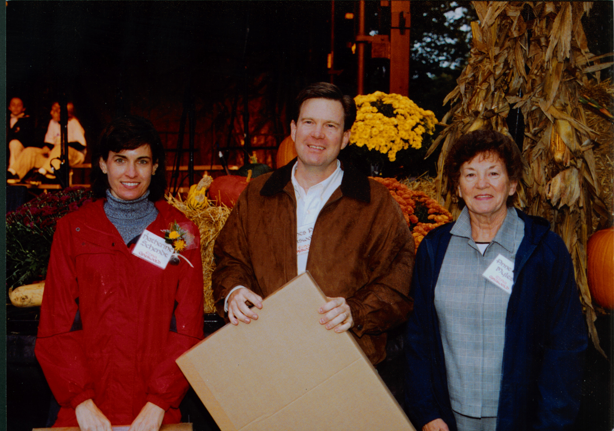 Descendents of Worthington founders were honored at the opening ceremonies of Founders Day 2002, which kicked off the Worthington Bicentennial Celebration. Pictured (left to right) are Katherine Schendt of Janesville, Wisconsin, James Griswold of Palatine, Illinois, and Anne Myles of Reynoldsburg, Ohio. They are descendants of Ezra Griswold (b. 1767, d. 1822), Scioto Company proprietor who migrated to Worthington with his wife and children in October, 1803.