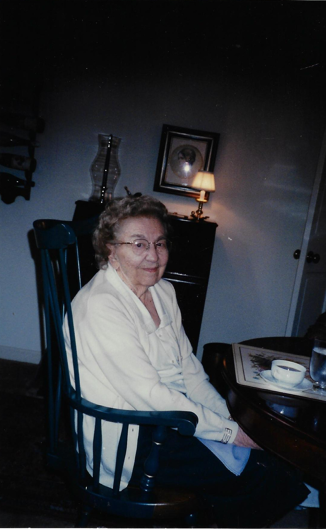 This photograph of Evelyn Conkle Gilbert (1901-2000) was taken at her 95th birthday celebration in August of 1996. Born in Bellevue, Ohio, Evelyn moved to Worthington with the Conkle family as a small child. She attended school at Ms. Eldridge's School and later graduated from Worthington High School. After teaching briefly at Worthington Schools in the early 1920s to pay for her education at Ohio State University, Evelyn moved to the Cleveland area where she taught for three decades. In 1958, Evelyn moved back to Worthington and married John Griswold Gilbert. Mrs. Gilbert was involved in numerous social activities in Worthington, including being very active with the Worthington Historical Society.