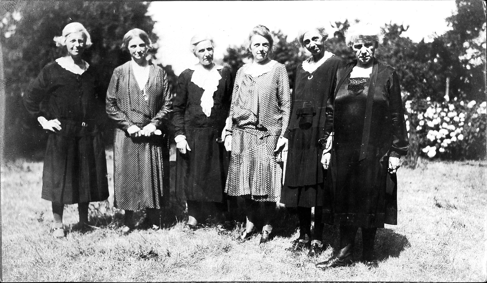 Pictured are the Griswold sisters who were among the 14 children born to Worthington Franklin Griswold and Fondelia Ruth Griswold. From left to right stand Edith, Mary, Caroline, Ruth, Mila, and Harriet. The sisters were the great-granddaughters of Ezra Griswold, the Worthington pioneer who built the Griswold Inn in 1811 to offer travelers a place to stop. The Inn became the residential home of the Griswolds, when Worthington F. Griswold began to raise his family there.