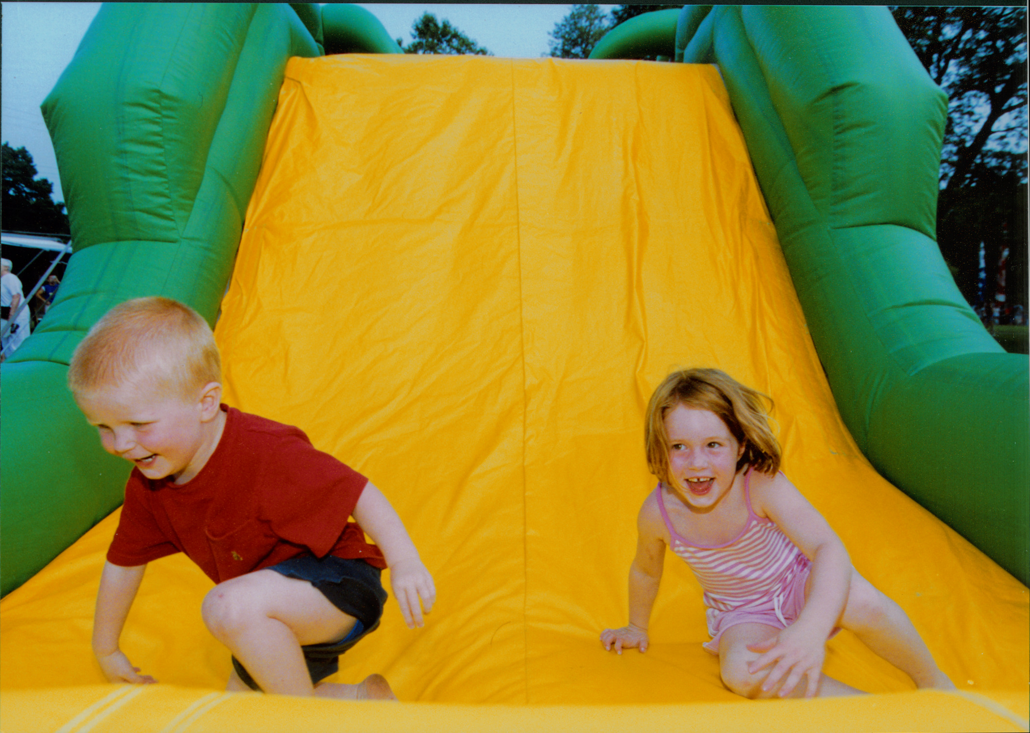 Children romped and played on the moon walk bounce, which was a part of the Super Games at the Family Fun Zone area of the Worthington Bicentennial Homecoming Celebration, July 4-5, 2003.
