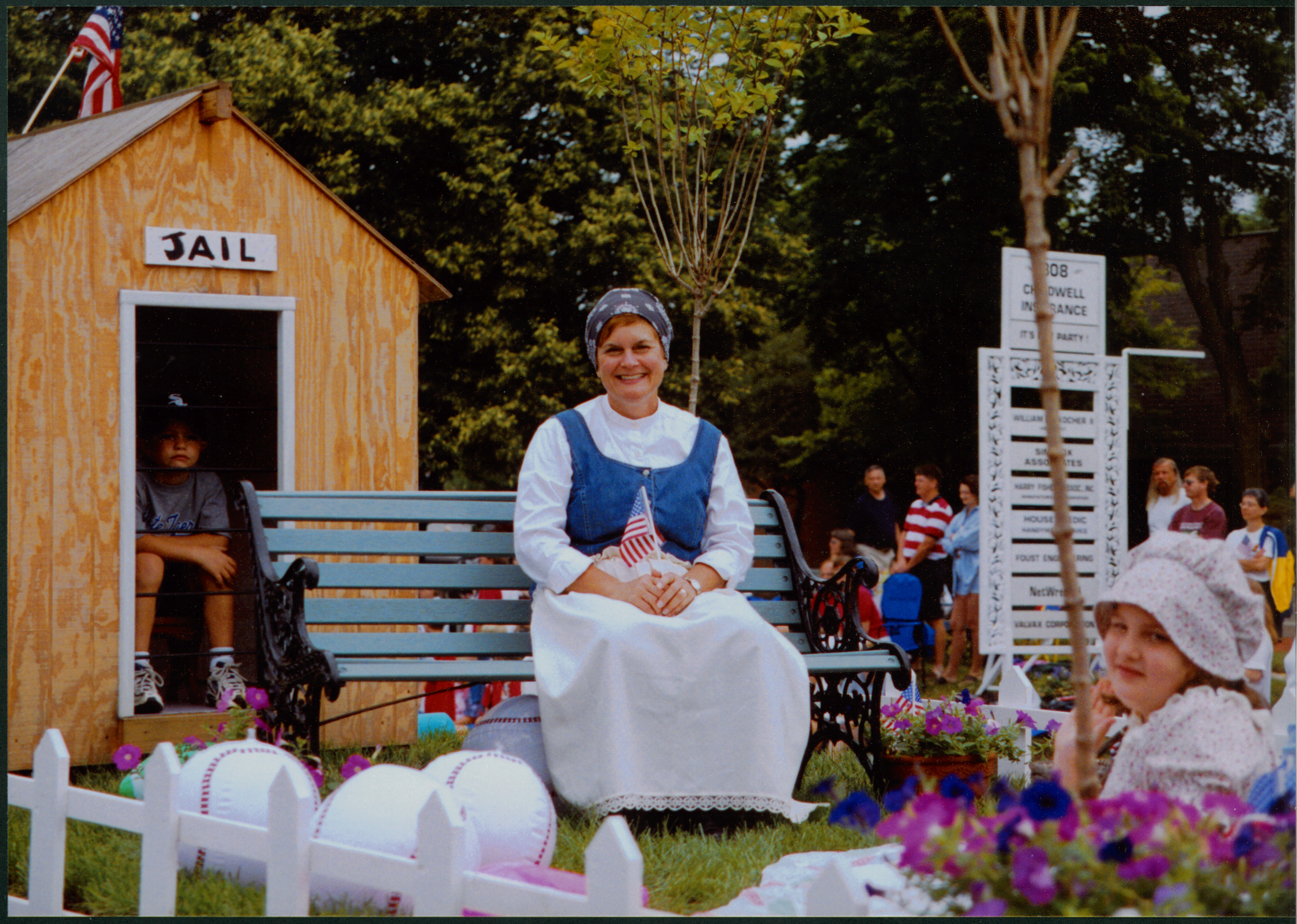 The Wilson Hill Elementary School Parent Teacher Organization' float entry in the Worthington Bicentennial Homecoming Parade was entitled "Not on the Green, You Don't!" The float's theme was the various laws governing use of the Village Green in Worthington for sports and leisure activities. A law dating to 1885 which prohibited playing ball of any type on the Village Green is represented by a young player sitting in jail, whose penalty would have been to serve 20 days for the crime.