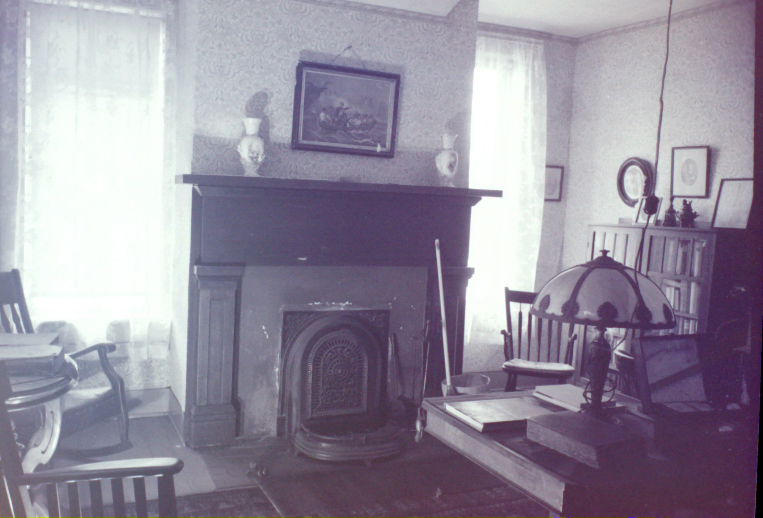 This image of the interior of the Griswold Inn was obtained from a series of negatives converted to digital images. The Griswold Inn stood on the east side of High Street, just north of the Village Green, and was built by Ezra Griswold in 1811 to offer travelers a place to stop. Ezra operated the inn until 1816, when he passed it down to his son, George H. Griswold. The structure was later converted from a tavern and inn into a residence, where Ruth Griswold, the last of the family to occupy the building, lived. Though the Griswold Inn Historical Foundation attempted to raise funds to purchase and restore the inn to use it as the Worthington Historical Society Museum, the building was razed in 1964. Gilbert Coddington, an architect who ultimately helped the Historical Society restore the Orange Johnson House, captured this image series before the demolition of the inn.
