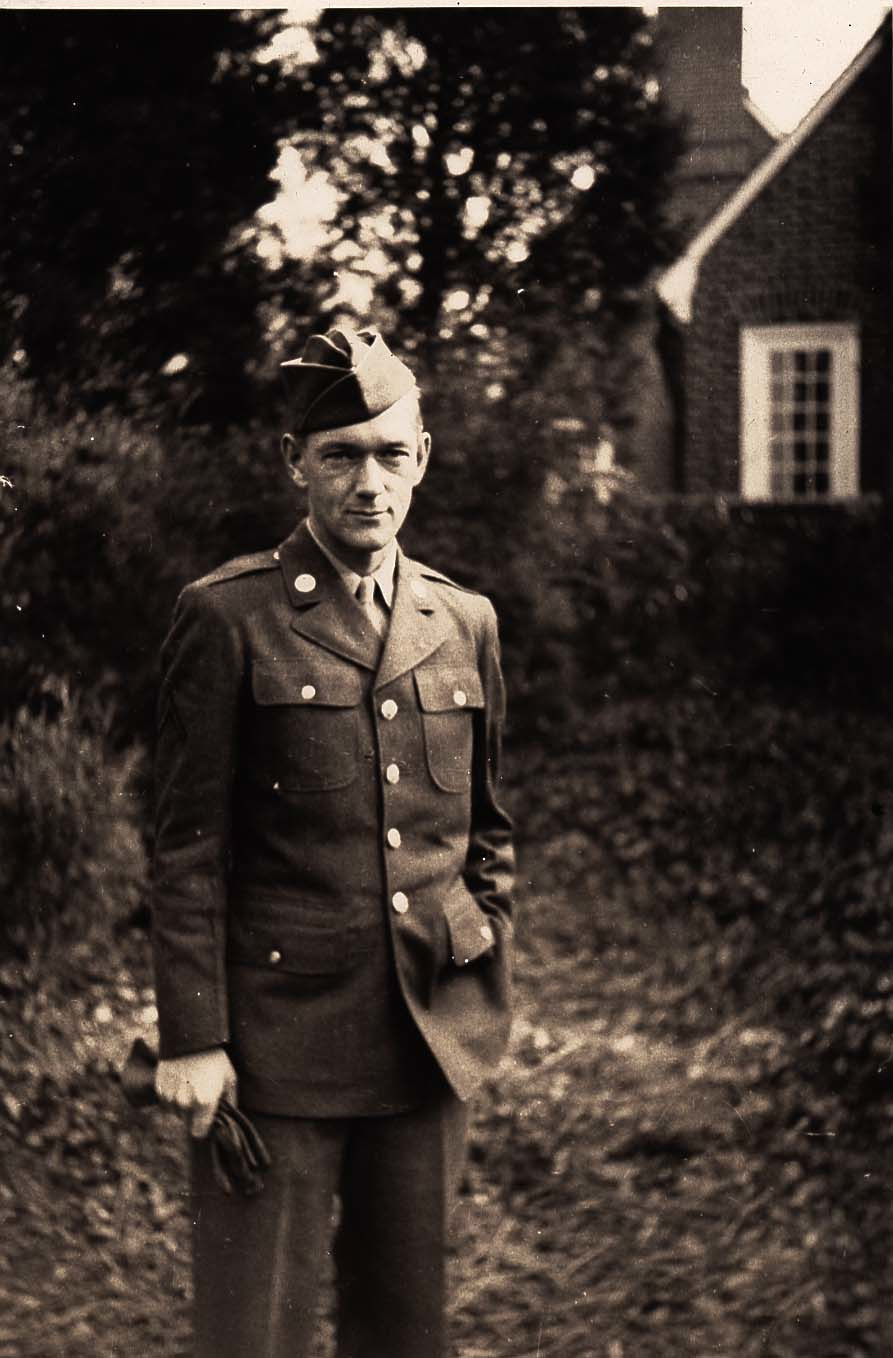 Pictured here is John Long in his military uniform, standing in a yard with a house in the background. John Fredrick Long was born in Worthington to William Carl and Caroline Vest Long, who lived at 707 Morning St. He registered for the WWII draft in 1942 as a member of the US Engineers Department. John passed away in 1996.