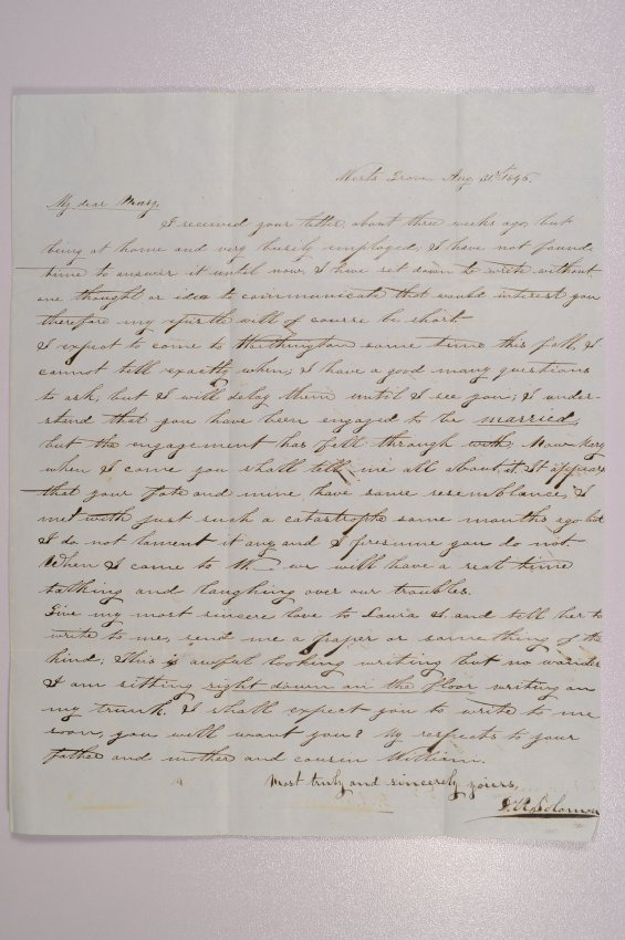 Although it is not clear, it sounds as though James Moreland had proposed to Mary and they had an understanding--likely not a formal engagement as we would know it today--but that her parents did not approve. A few letters between Mary Johnson and James Moreland remain including the one where she ends their correspondence.