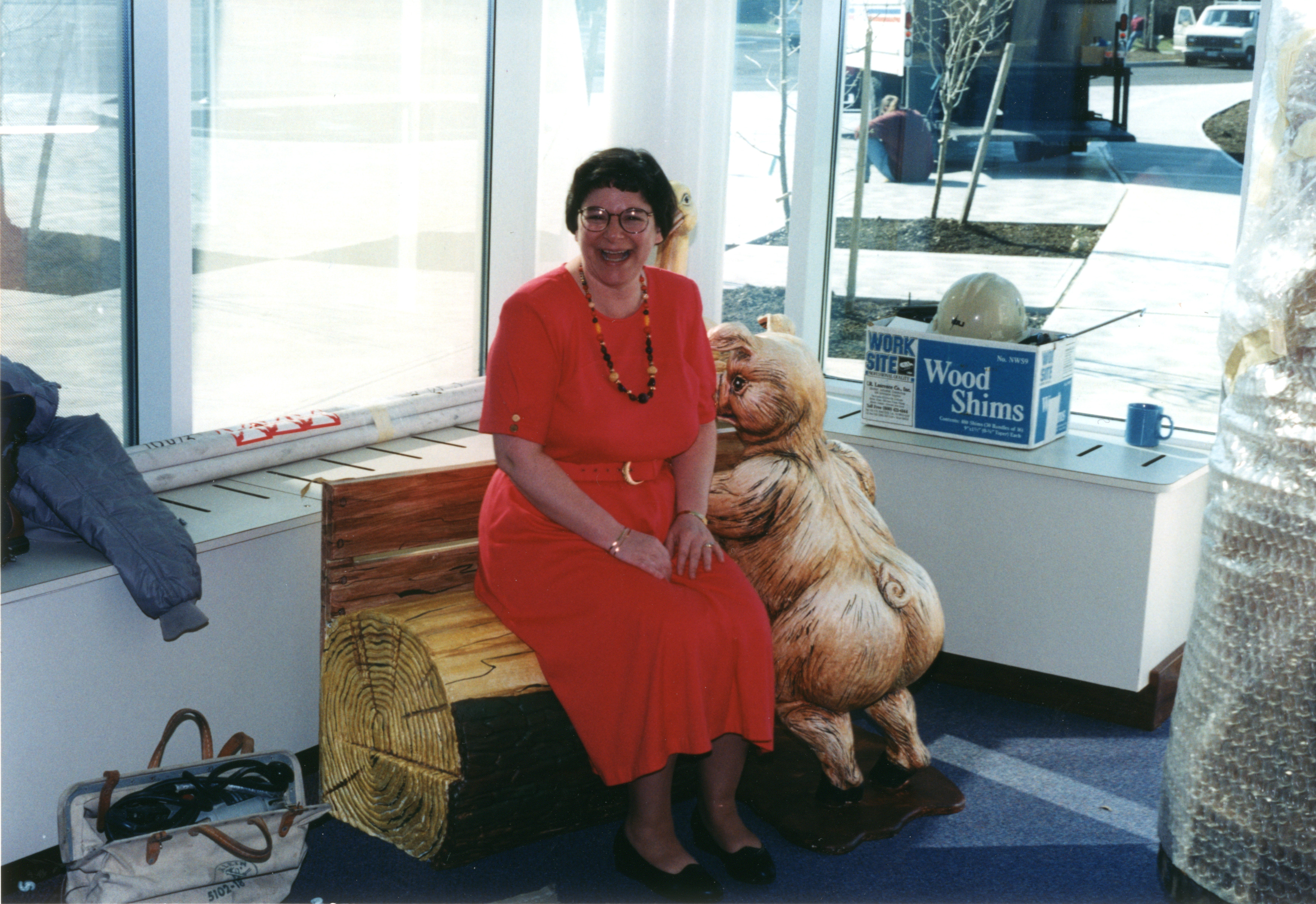 Worthington Libraries Director Meribah Mansfield is pictured here during the Northwest Library construction. Next to her is the character Wilbur, based on Garth William’s illustrations from “Charlotte’s Web” by E.B. White. This character became part of the Story Garden at the Northwest Library.