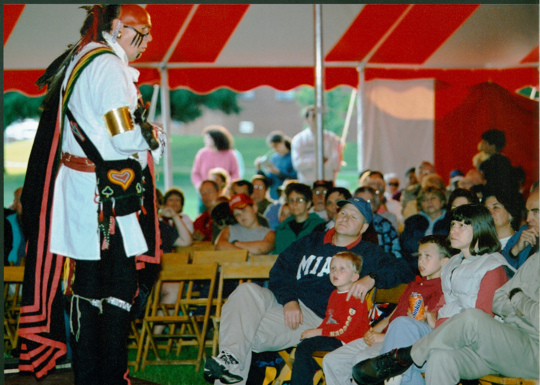 Scholar Dan Cutler performed as Chief John Logan during the Ohio Chautauqua. History was brought to life in front of an audience, providing insight to the life of Chief Logan and his experiences with settlers on the Ohio Frontier. The Ohio Chautauqua was held over five days under a big tent on the front lawn of Thomas Worthington High School.