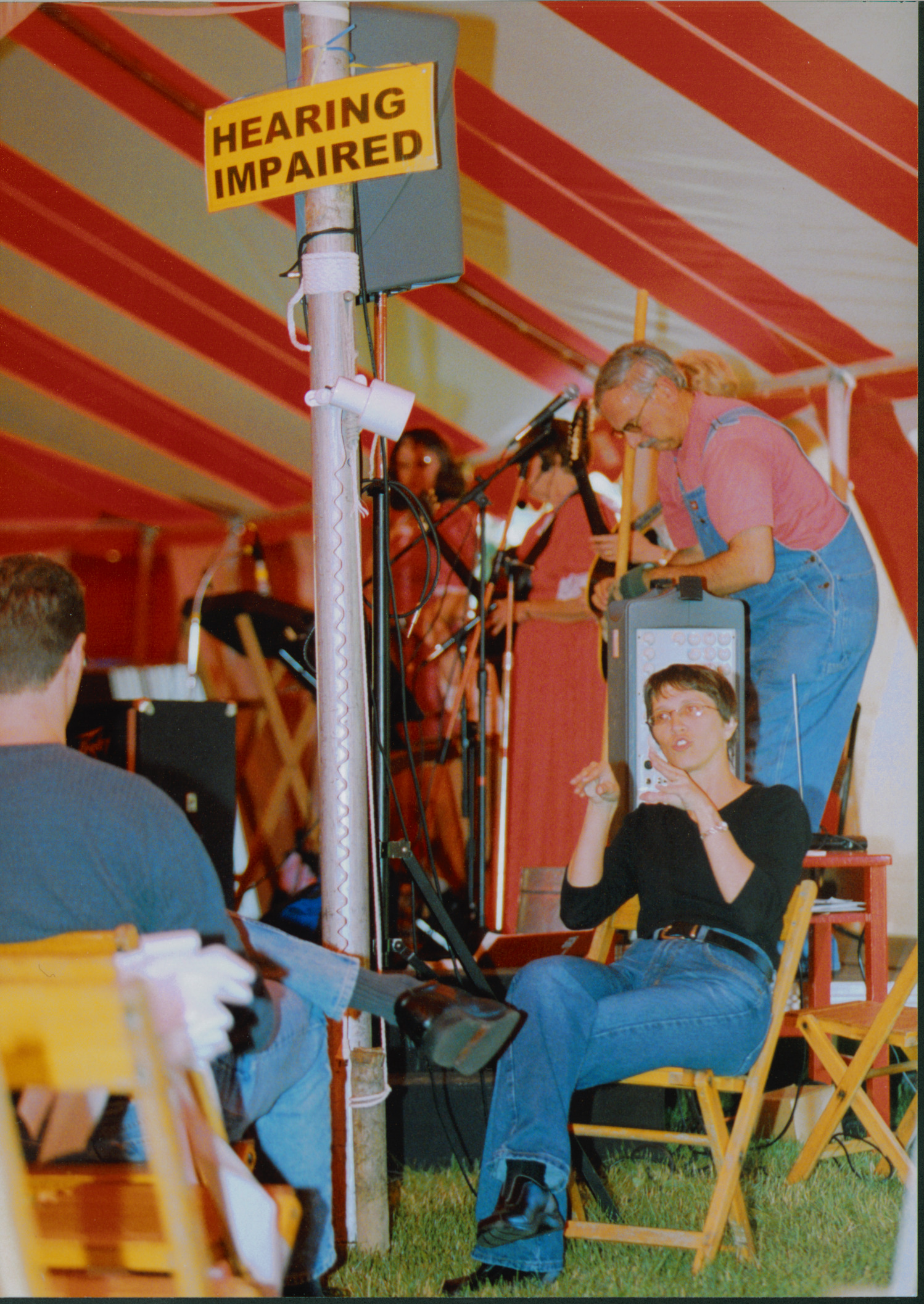 The five day Ohio Chautauqua 2003 took place under a big top tent on the front lawn of Thomas Worthington High School. Each evening a scholar actor performed a character presentation, all of which were signed by American Sign Language Interpreters.