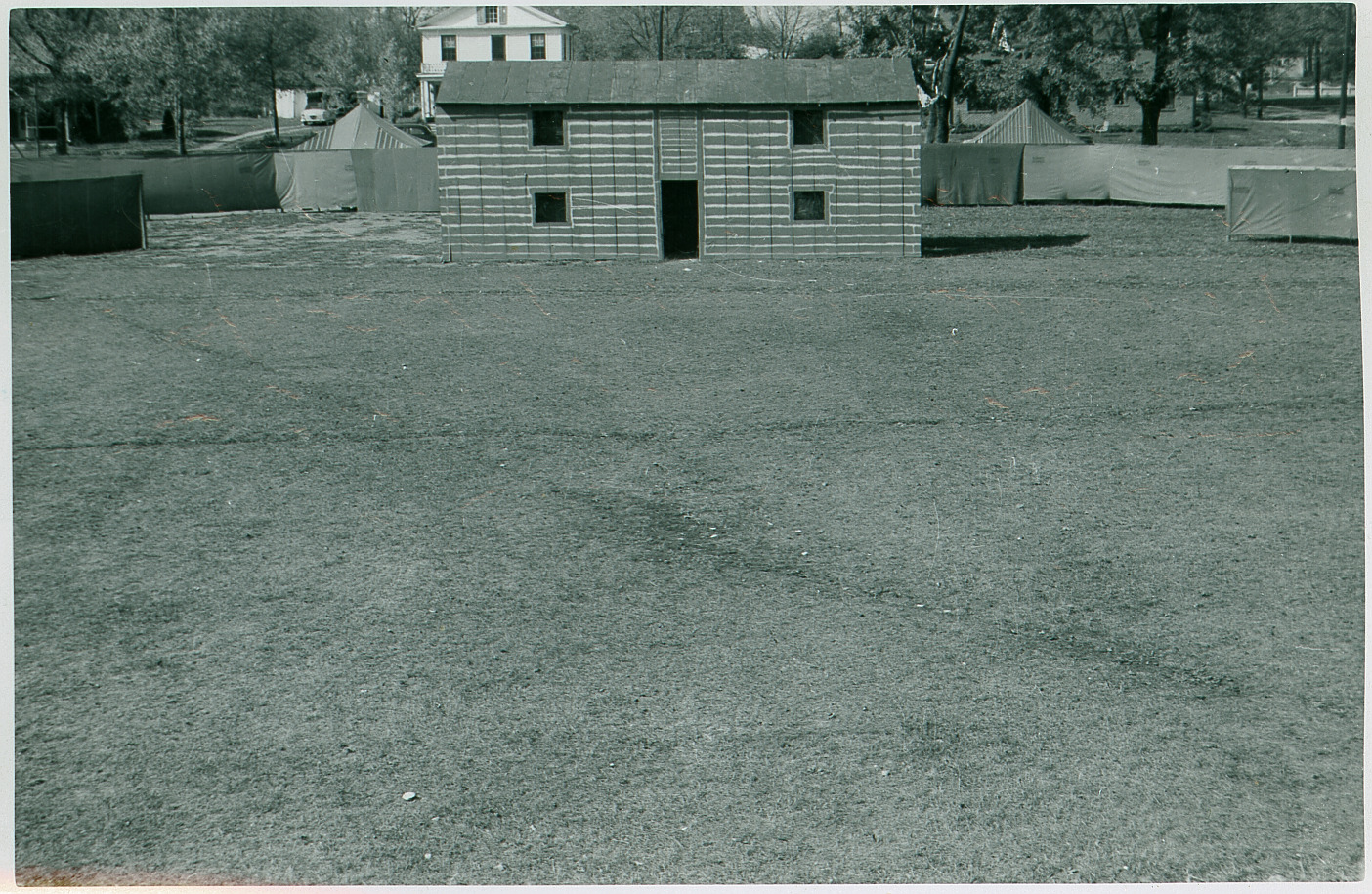 The Whetstone Venture, Worthington's sesquicentennial pageant, was performed at Hartford Park at the corner of Hartford and East Stafford. The building on the set represents Town Hall. Two makeup tents stand behind the set. The white building in the rear is the Old Rectory, which was located at 799 Hartford Street from 1924 - 1978.