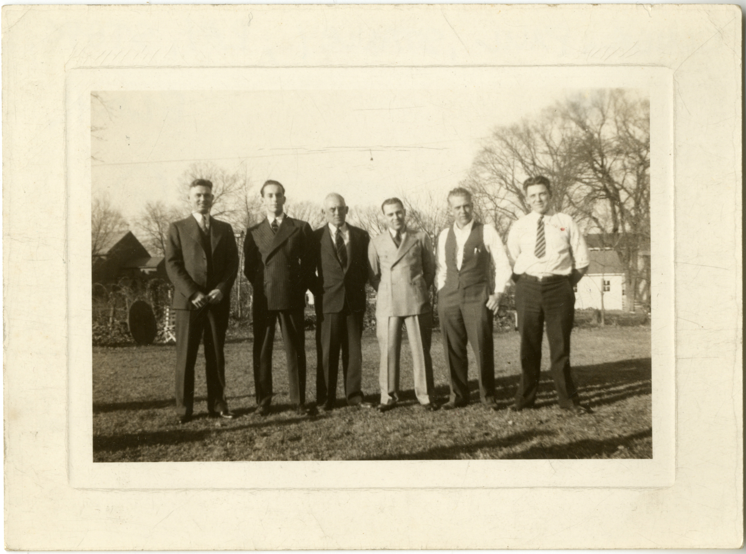 This photo shows the Snouffer family men in May 1943. From left to right are Leslie, Paul, Stanley, Ray, Steve and Elmer.