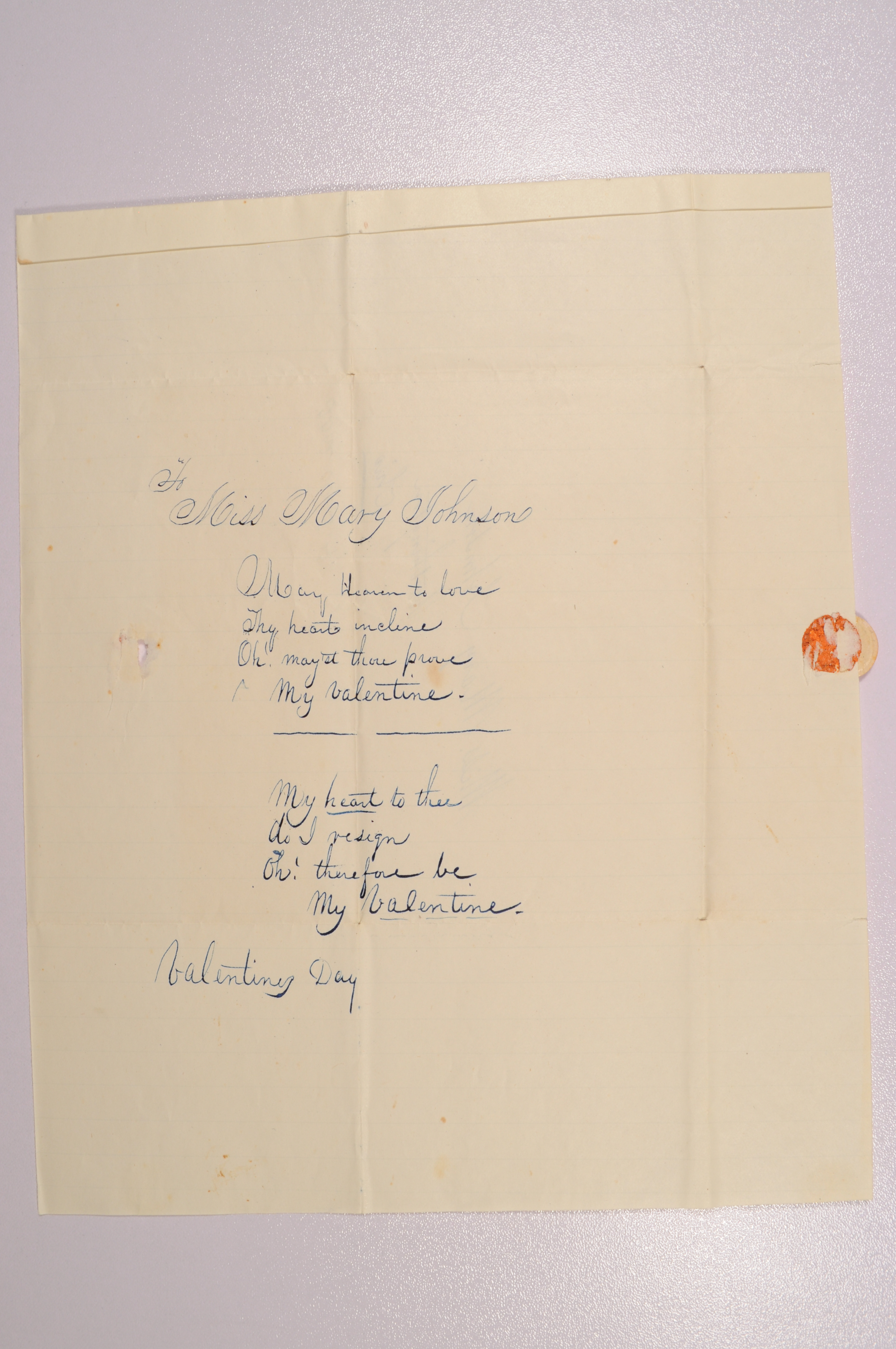 Valentine Poem Written to Mary Johnson from Unknown Writer