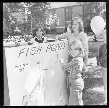 This photograph was taken at the 16th annual flea market for Worthington Historical Society, held on Market Day on the southeast quadrant of the Village Green. The Worthington Historical Society's representative on the Market Day steering committee was Betty Lazar. Market Day featured art displays, entertainment, booths for civic organizations and the flea market.